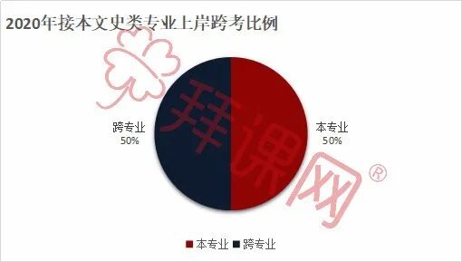 由于很多接本同学大都选择文史类专业的跨考,所以小通结合拜课网独家大数据给大家分析一下文史类专业上岸考生的跨考比例: