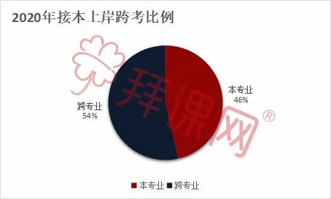 根据拜课网独家大数据,在接本成功的考生中,跨专业接本上岸的考生占比为54%,比原专业接本上岸的46%还要高出8个百分点,看到这个数据跨专业报考的你是不是信心更足啦!